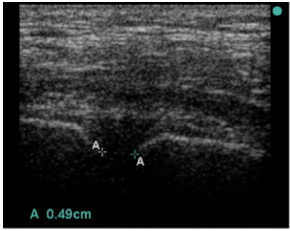 The width of the pubic symphysis can easily be measured with the same high frequency linear probe that you use to exclude a pneumothorax. The upper limit of normal width measured at the point shown in the image is <25mm in adults (Bauman). I am not aware of any published data on children. As with all things there is a bit of variation here and cadaver studies have shown that anterior sacroiliac ligament disruption is likely for displacement greater than 45 mm and unlikely for values less than 18mm. So if the symphysis is less than 18mm you can be very confident the pelvis is not “open”.